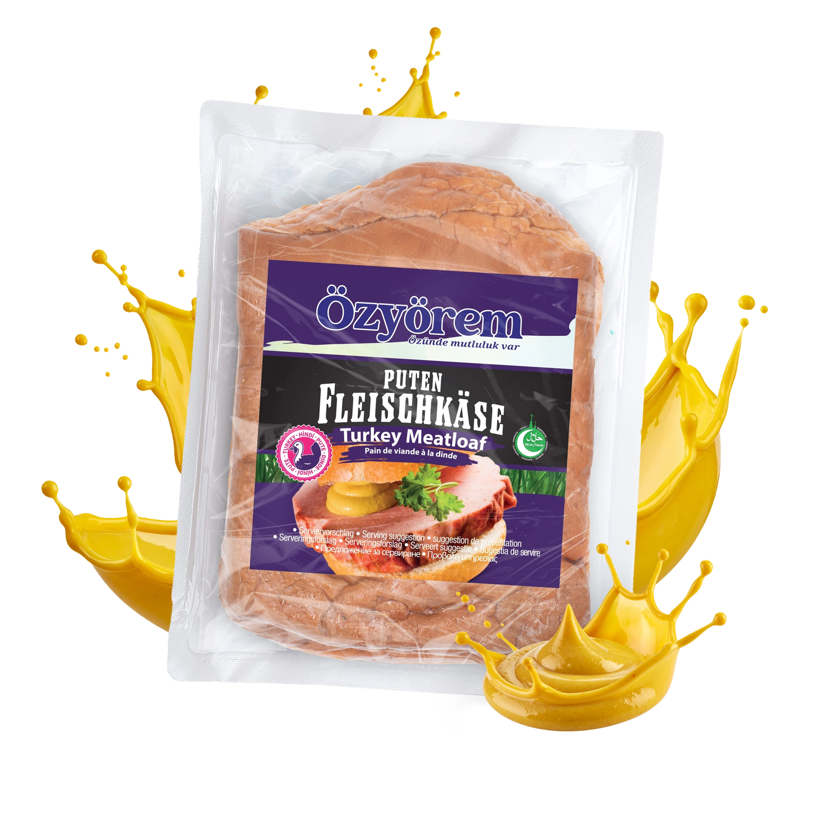 Der Özyörem Fleischkäse aus Putenfleisch überzeugt mit 60 % zartem Putenfleisch und einer goldbraunen. ofengebackenen Kruste. Die Kombination aus hochwertigem Fleisch. aromatischer Brühe. mildem Rapsöl und pflanzlichen Zutaten wie rotem Rettich macht diesen Fleischkäse besonders saftig. herzhaft und zugleich leichter als herkömmliche Varianten. Ein hochwertiger Fleischkäse-Genuss – ideal zum Braten. Überbacken oder als Snack zwischendurch.